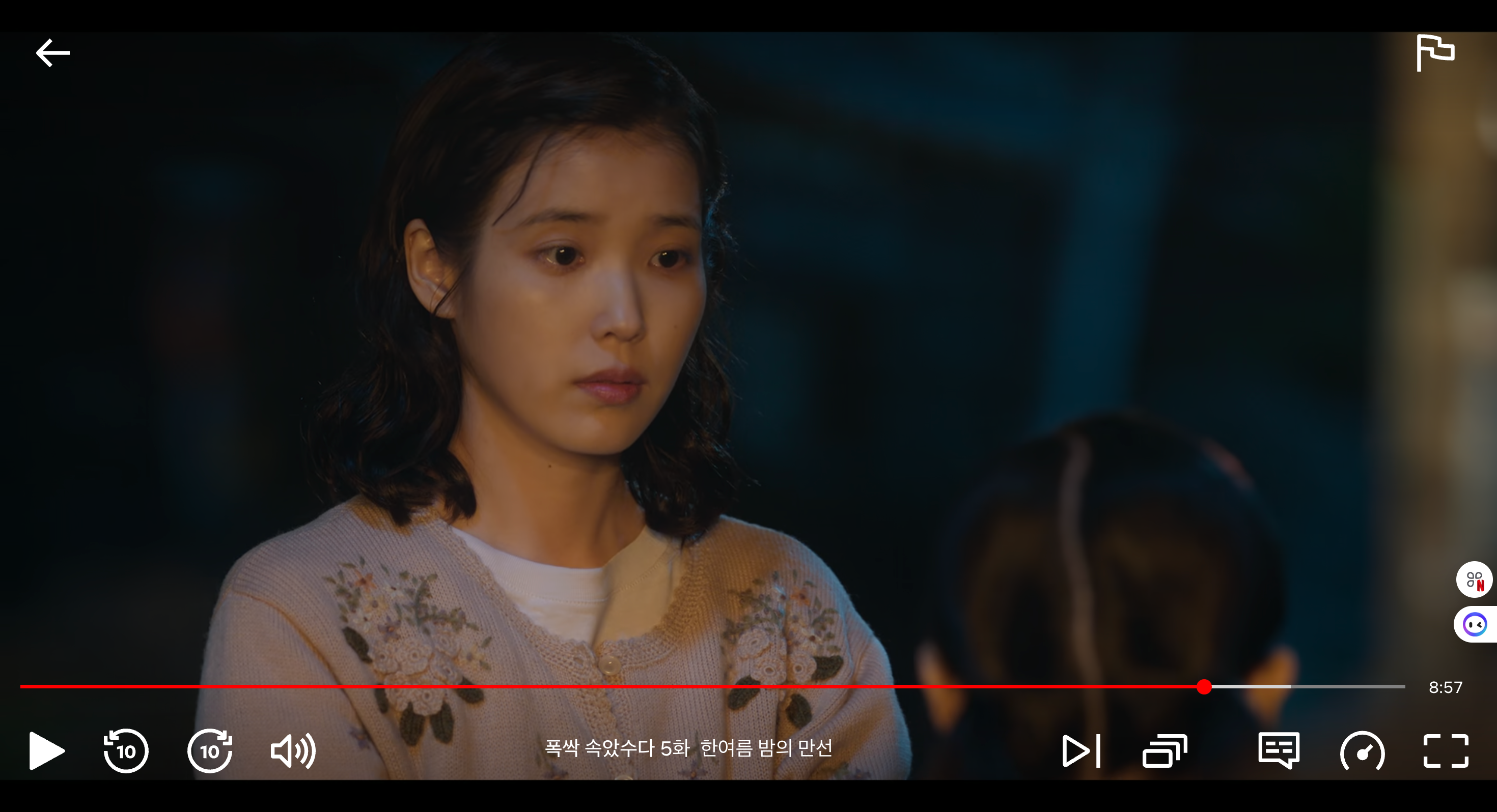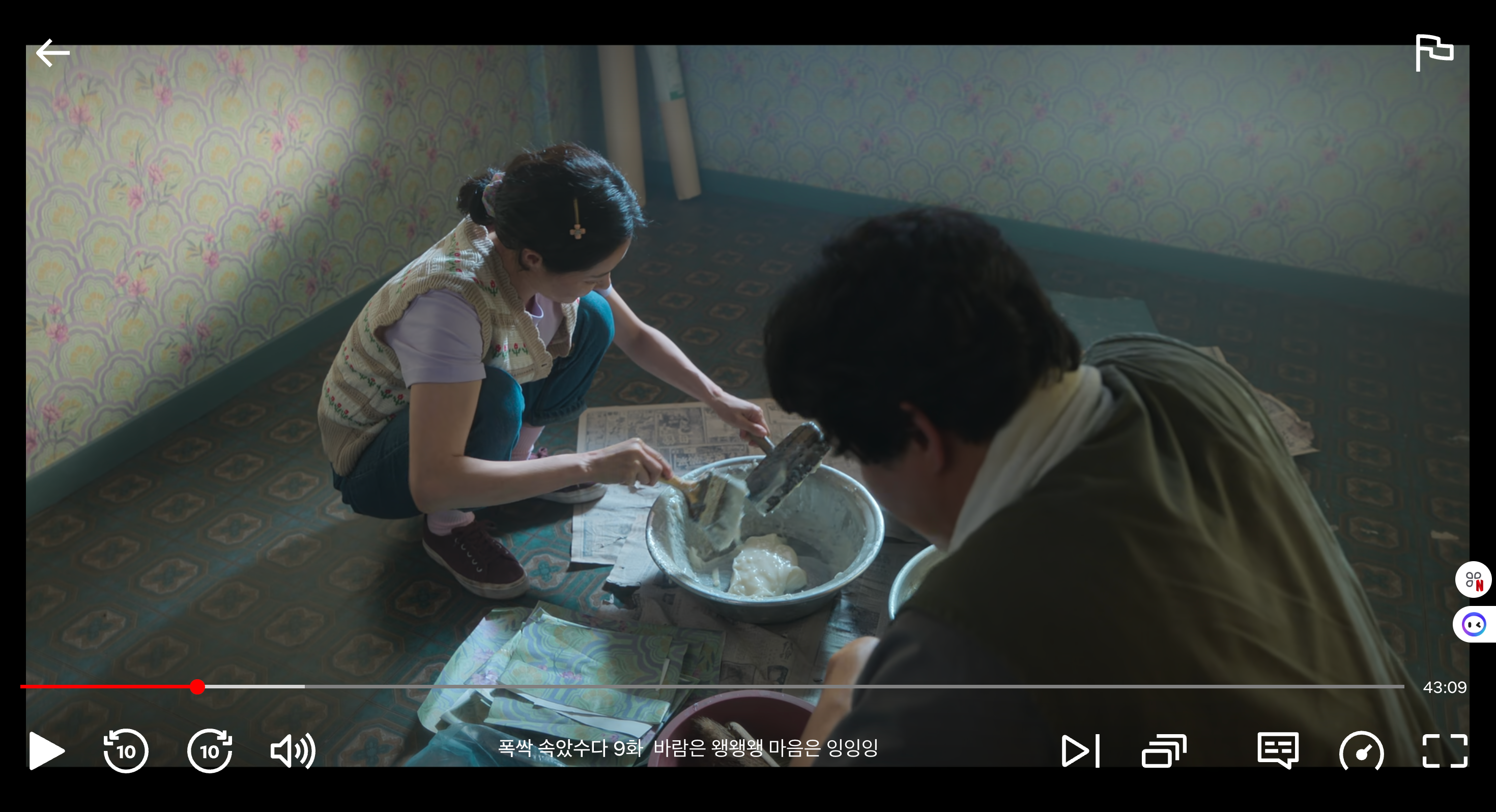 왜 "폭싹속았수다"의 화면은 다른 시리즈보다 더 보기 좋을까? 색상 팔레트를 제한하여 사용했기 때문이다. 전환되는 다음 두 씬에서 각 주인공은 비슷한 색깔의 옷을 입고 있고 배경을 구성하는 색도 통일되어 있다. 마치 파워포인트를 만들 때 폰트와 색깔을 제한하는 것처럼 색 조합을 제한하면 더 응집력 있는 화면이 만들어진다. 이 외에도 두 주인공이 비슷한 색깔의 옷을 입고 있는 장면이 몇 번 반복되는데 이는 두 인물의 연결관계를 보여주면서 동시에 이 이야기의 큰 주제인 세대를 통해 반복되는 사랑에 대한 훌륭한 미장센이기도 하다.