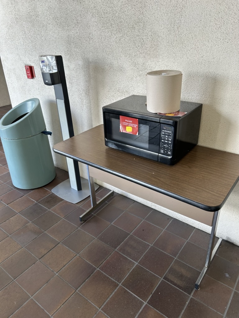 캠퍼스 곳곳에는 전자레인지가 있다. 전자레인지 돌릴 때 뚜껑을 닫고 돌리라는 안내가 써져있다. 미국에서 공짜가 잘 없는데 이 전자레인지 옆에는 닦을 수 있는 티슈가 놓여있다. 이 ESL 수업은 지역에 있는 사람들에게 무료로 제공되는데 이 수업과 전자레인지, 그 옆 티슈에서 미국 사회에서 찾아보기 힘든 공공성을 느낄 수 있었다.