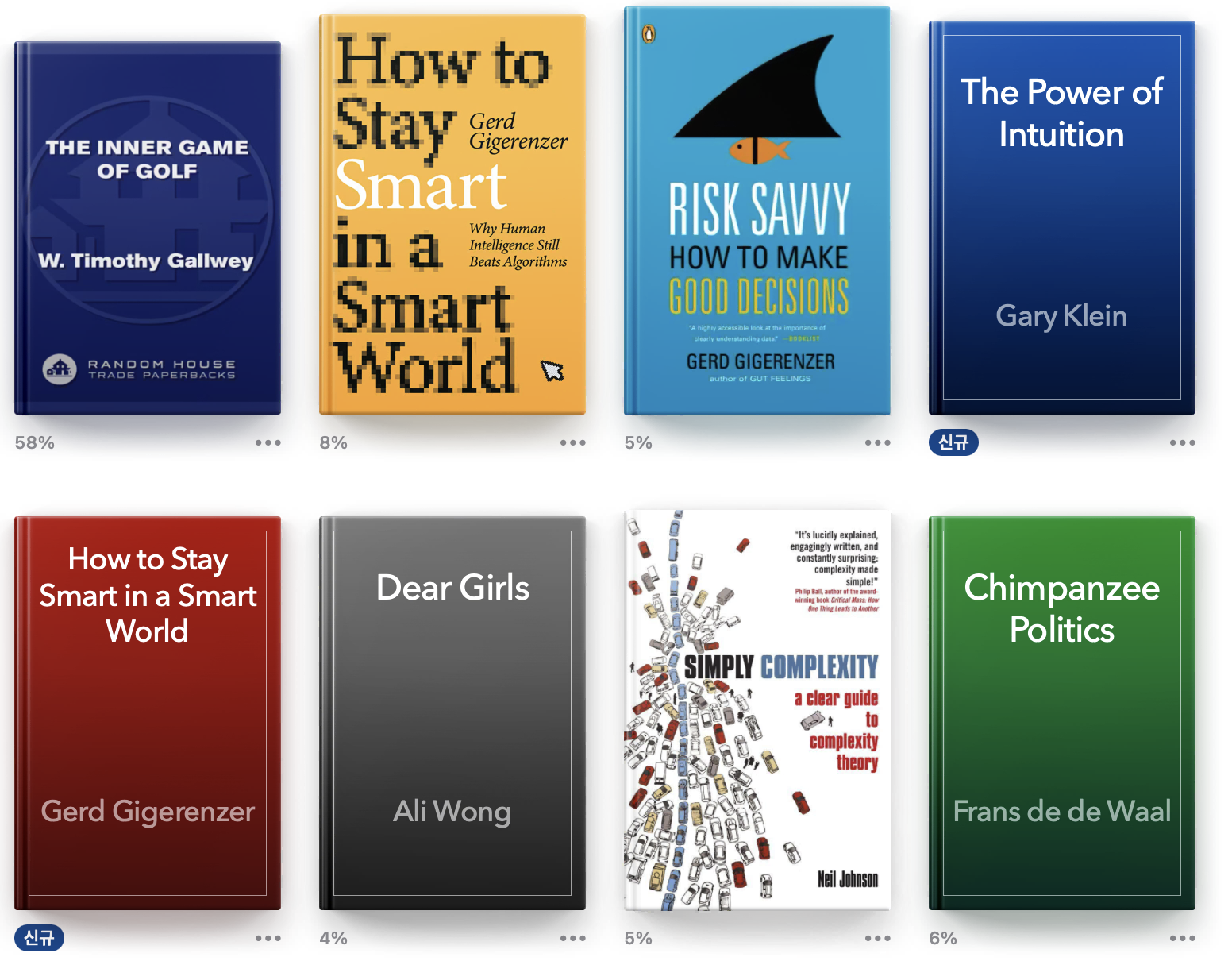 최근에 읽고 있는 책 목록인데 The Power of Intuition 엄청난 책이다. (책 %가 낮은 건 리디페이퍼로 옮겨서 보고 있기 때문. 안 보고 본 것처럼 말하는 것 아닙니다!!) 책의 메시지를 간단하게 정리하자면, "분석은 Shit이다. 분석하기 전에 너가 가지고 있던 그 느낌(Intuition)을 믿고 따라라."이다.