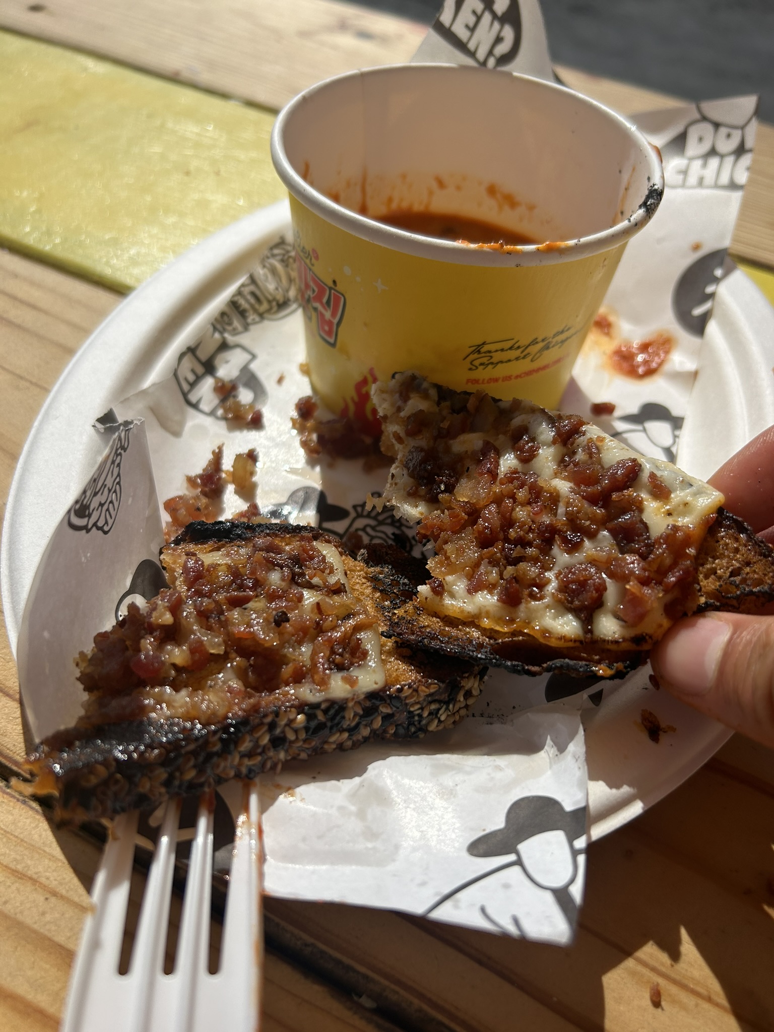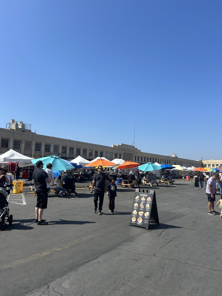 DTLA의 경우에는 매주 일요일마다 음식들을 파는 팝업이 열린다고 해서 방문했다. 정말 다양한 음식들이 판매되고 있었는데 한국음식을 팔고 있는 두 곳이 있어 그 앞에 자리를 잡고 어떤 사람들이 사먹고 얼마나 인기 있는지 살펴봤다. 그 중 한 곳인 치믈리에는 인스타그램을 통해서도 많이 봤던 업체였는데 그 때 느꼈던 것처럼 가게 외관이나 색감 등을 확실히 감각적으로 잘 꾸며놓았다. 나도 들러서 양념 닭강정과 김치 그릴드 치즈를 시켰다.