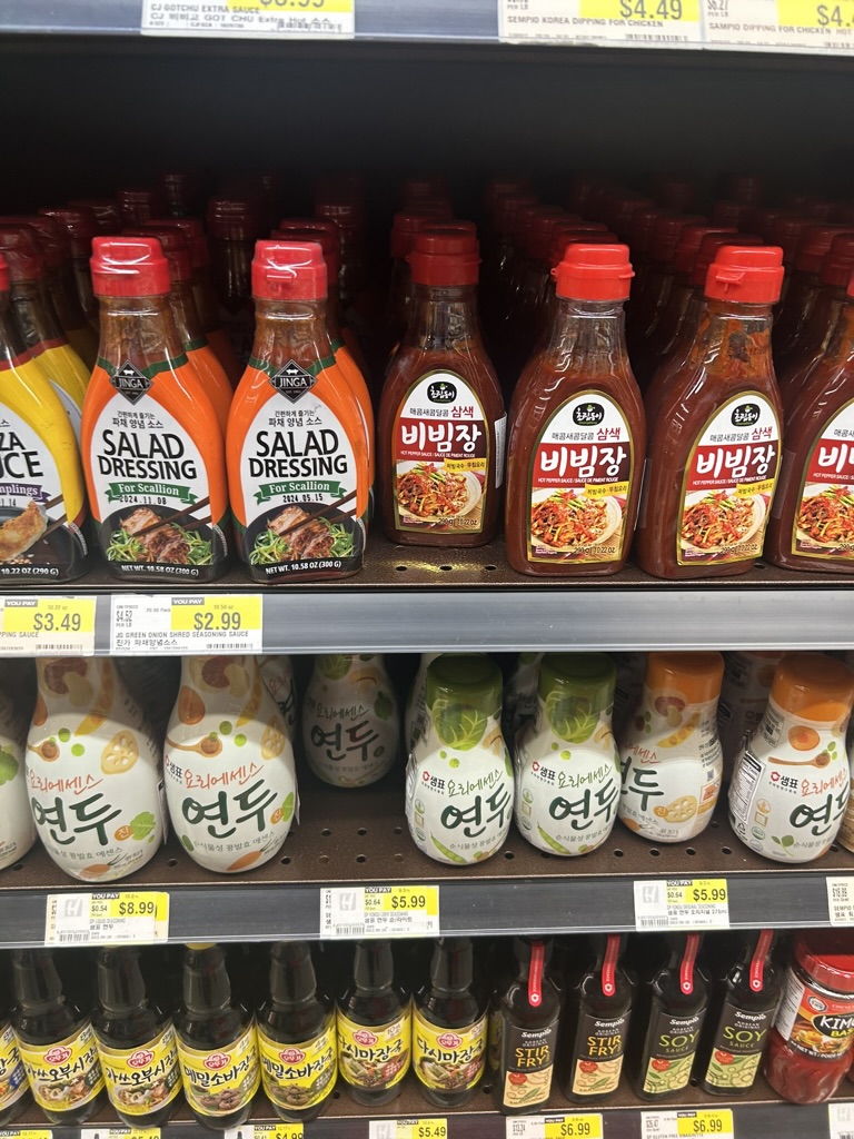 그런데, 이 만능이라는 키워드가 미국에 진출한 소스에도 먹힐까? 안타깝게 그렇지 않을 것 같다. 여기서 보고 경험한 바로는 굉장히 뾰족하게 하나의 용도에 타겟하여 일단 시장을 진입하는 것이 훨씬 효과적이다. 간장같은 경우에도 덴뿌라용 간장으로 포지셔닝했을 때 매출이 훨씬 빠르게 올라가는 것을 확인할 수 있었고, Meetup을 준비하면서 Hmart에 들렀을 때 점원도 파채소스가 굉장히 핫하다는 이야기를 들려줬다. Hmart의 진열대에 같은 비빔자인데도 하나는 만능 비빔장에 가깝게 다른 하나는 파채에 특화된 형태로 소구하고 있어 어떤 것이 더 잘 나갈지 궁금했다.