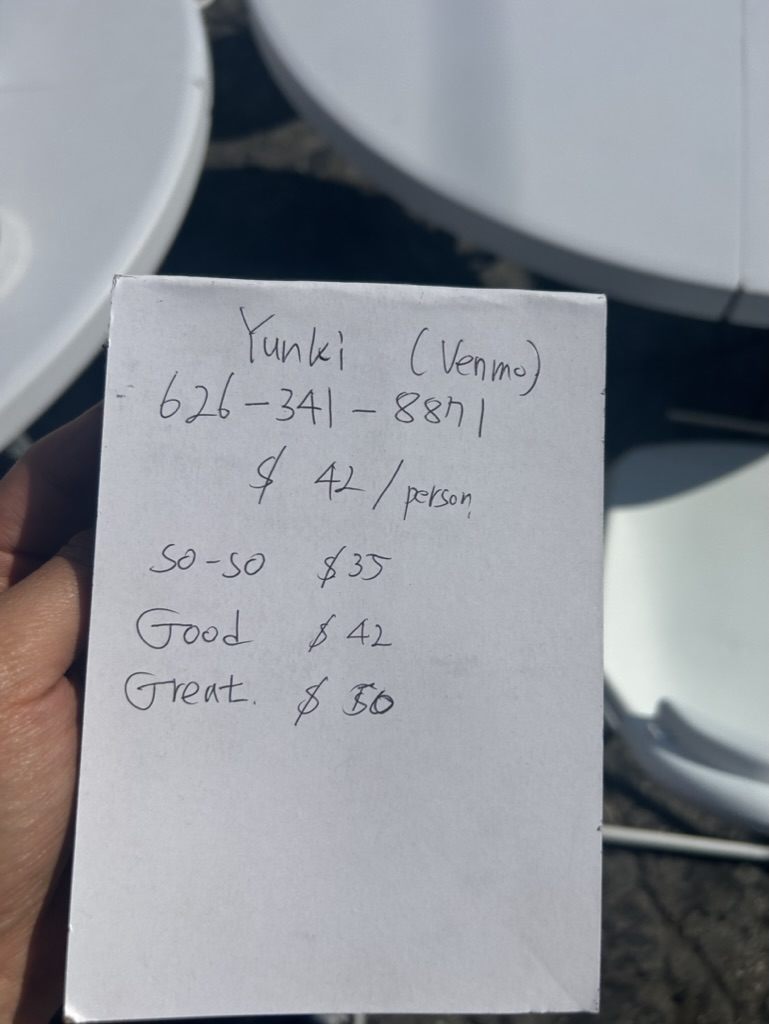 이전에 올렸던 F&B 사업을 린하게 해볼 수 있을까의 첫 삽을 떴다. 삼겹살 밋업을 열었다. 원래는 한국에서 인기있는 야장 컨셉으로 내가 빌린 공간의 주차장에 구현을 하고 싶었는데 테이블과 의자를 구하지 못해 임시로 마련한 테이블에 테이블보를 치고 자리를 세팅해야했다. 처음에 준비하면서 뜻대로 되지 않는 부분이 많아 매우 많이 후회하고 솔직히는 포기할 생각을 정말 많이 했다. 내 안의 애자일하지 않은 모습이 계속해서 튀어나와 지금 이대로는 안 된다는 생각이 계속 떠올랐는데 정말 강.행.했다. 일단 어떻게든 마쳐보자는 마음으로 이벤트를 열었는데 꽤 성공적이었다. 물론 엄청 큰 성공은 아니었지만 같이 자리한 사람들 대부분이 즐거워하는 자리를 만든 것 같아 만족스러웠다. 미리 준비한 고기와 김치, 미나리 및 쌈을 같이 싸먹으면서 이야기를 나누는 시간을 가졌고 나혼자산다에서 본 취화채를 만들어 나눠먹었다. 자리를 마치고 나서 만족스러웠으면 $42, 그렇지 않으면 $35, 훌륭했으면 $50으로 입금해달라고 해서 피드백을 받았다. 이 입금하는 안내문도 미리 안 만들어 현장에서 즉석으로 제작한 아주 우당탕탕 굴러가는 경험이었는데 우당탕탕이었지만 일을 끝마친 것에 뿌듯함을 느꼈다. 이 날은 특히나 내 삶에 있어 큰 분기점이 되는 것과 같은 경험이었다. 정말 미국에서 사업을 할 수 있을 것 같다는 생각, 그리고 올해 목표였던 생산자로서의 삶에 첫걸음을을 내딛은 느낌이었다. 1시에 시작한 행사를 마치고 다 치우고 나니 저녁 8시 정도가 되었는데 아주 뿌듯한 마음으로 집에 돌아올 수 있었다.